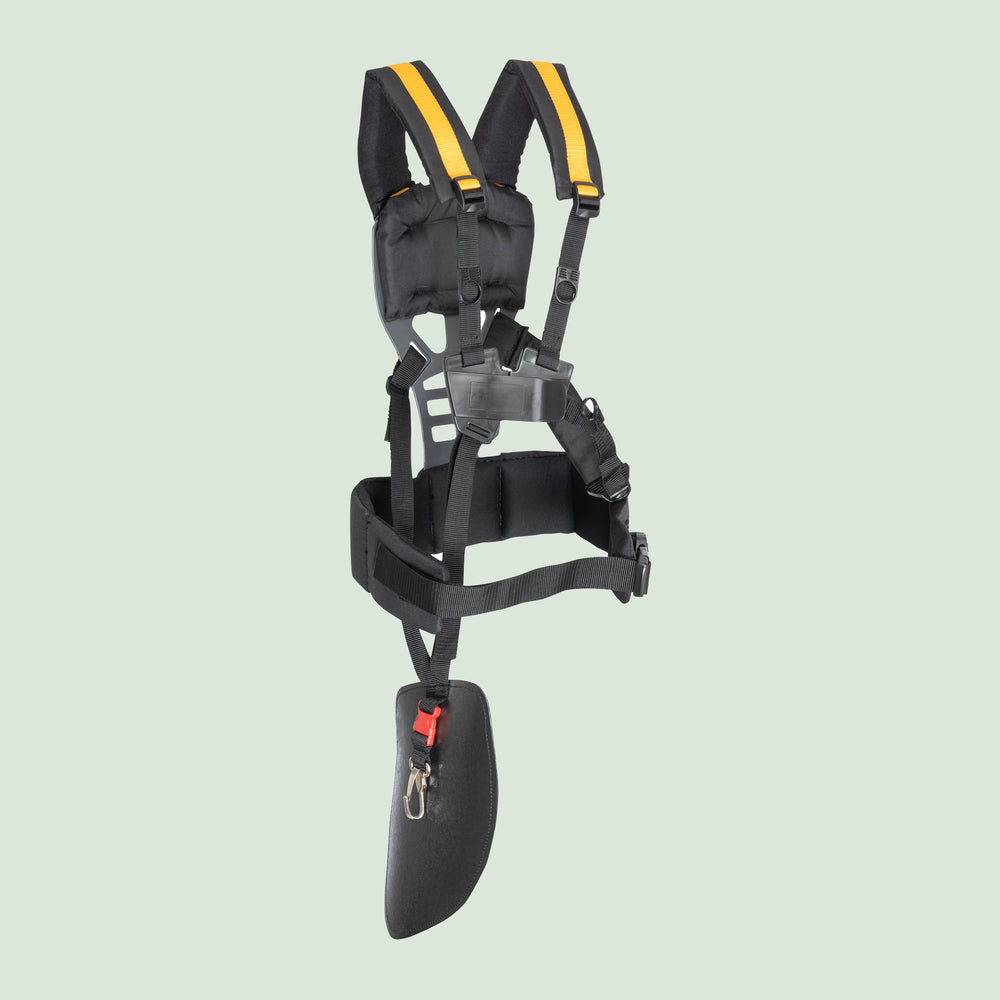 Denne bæreselen er designet for å gjøre arbeid med ryddesag både enklere og mer behagelig. Selen er utstyrt med dobbelt polstrede skulderstropper og en bakplate som sammen bidrar til å redusere belastningen på ryggen under lengre arbeidsøkter. Hofteputer på siden gir ekstra støtte og gjør det lettere å manøvrere ryddesagen.
